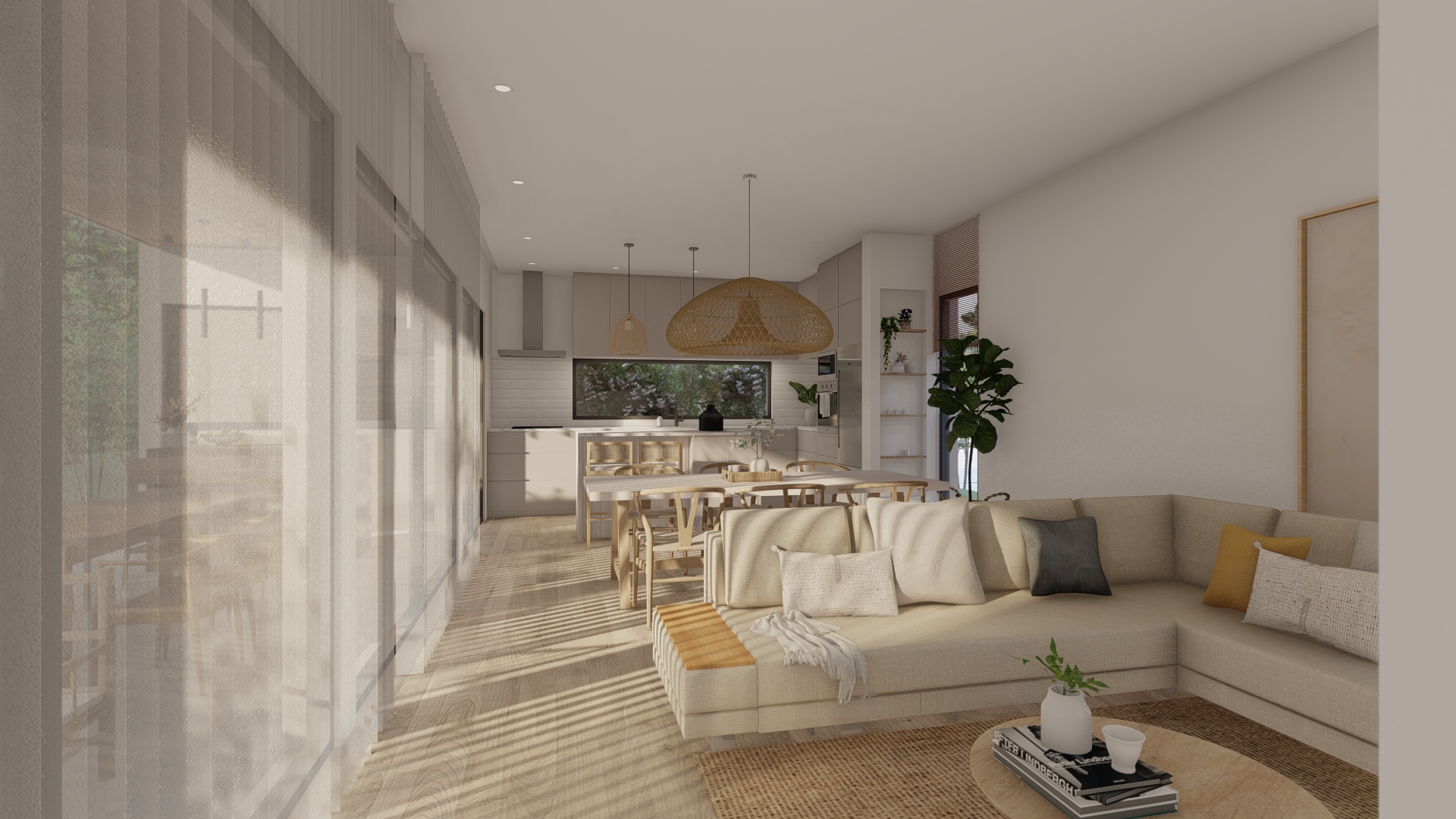 Los ambientes principales se disponen buscando continuidad visual y espacial, generando una relación directa con el paisaje.