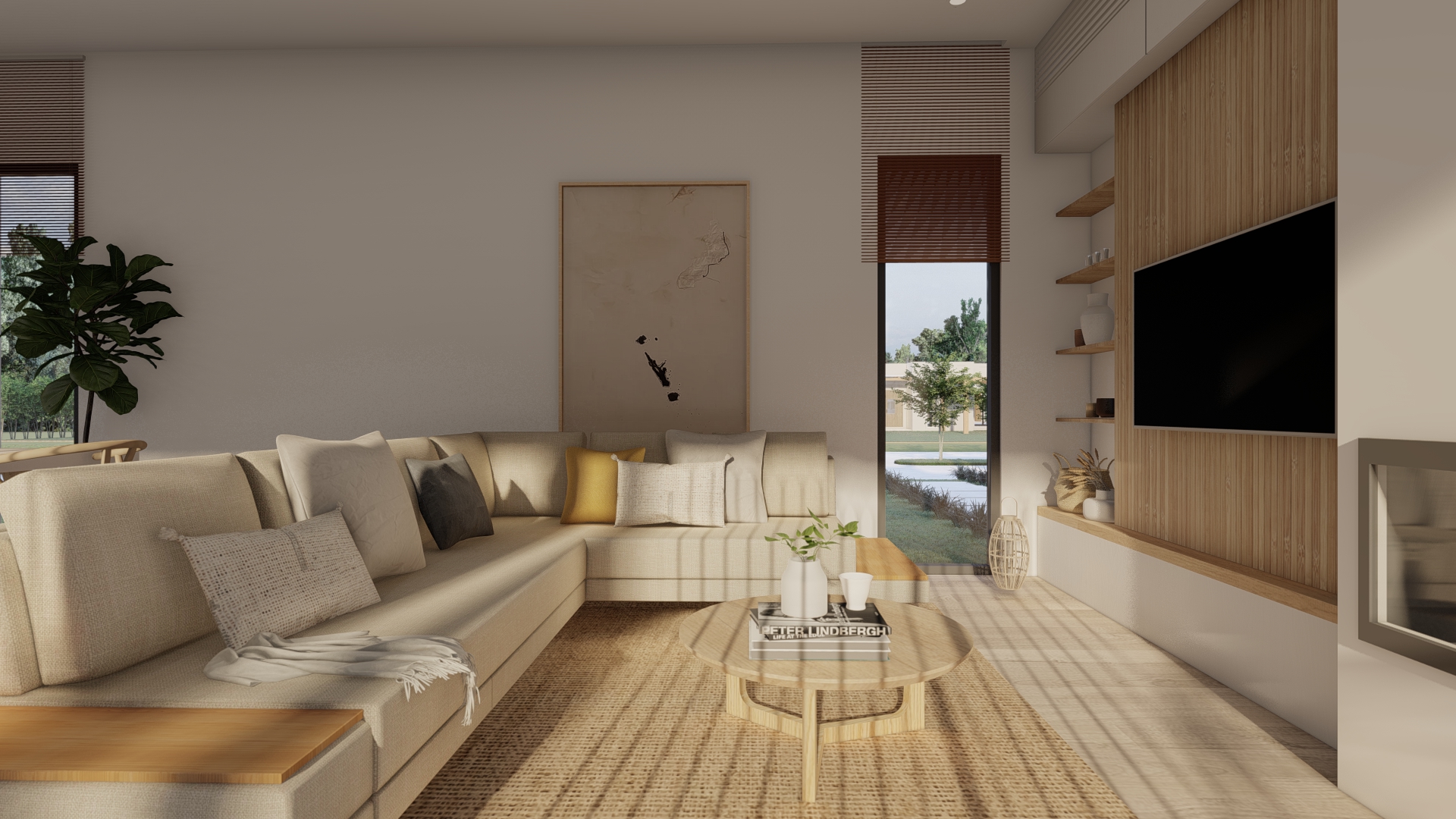 La materialidad refuerza esta idea, combinando planos neutros con elementos cálidos que acompañan la atmósfera del proyecto.