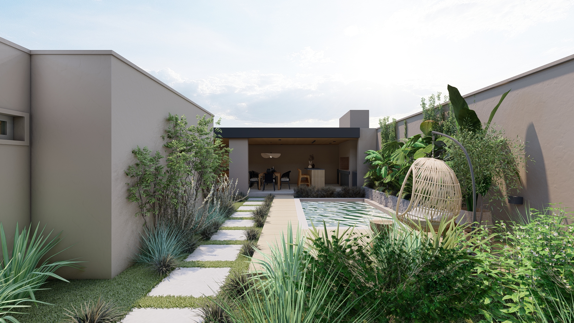 Este proyecto se desarrolla a partir de la necesidad de reorganizar el exterior como una extensión real de la casa.