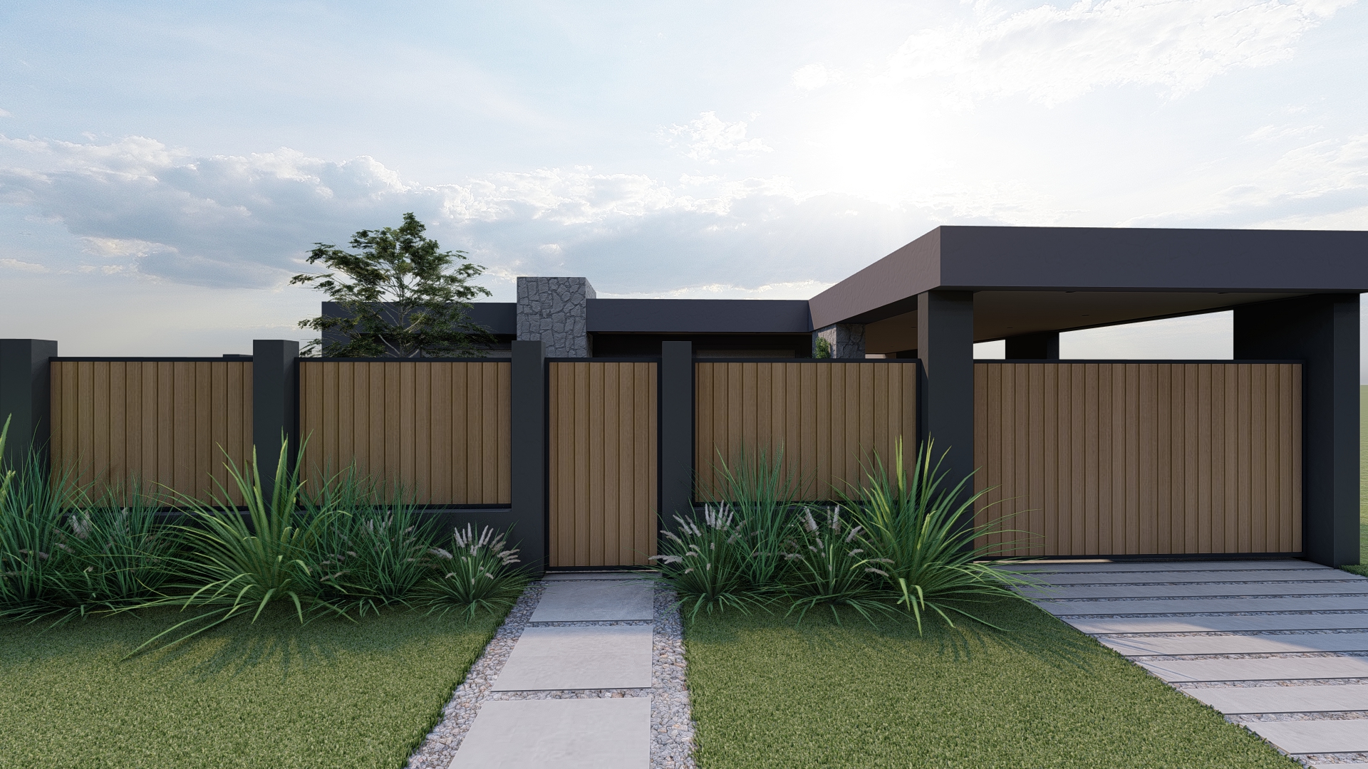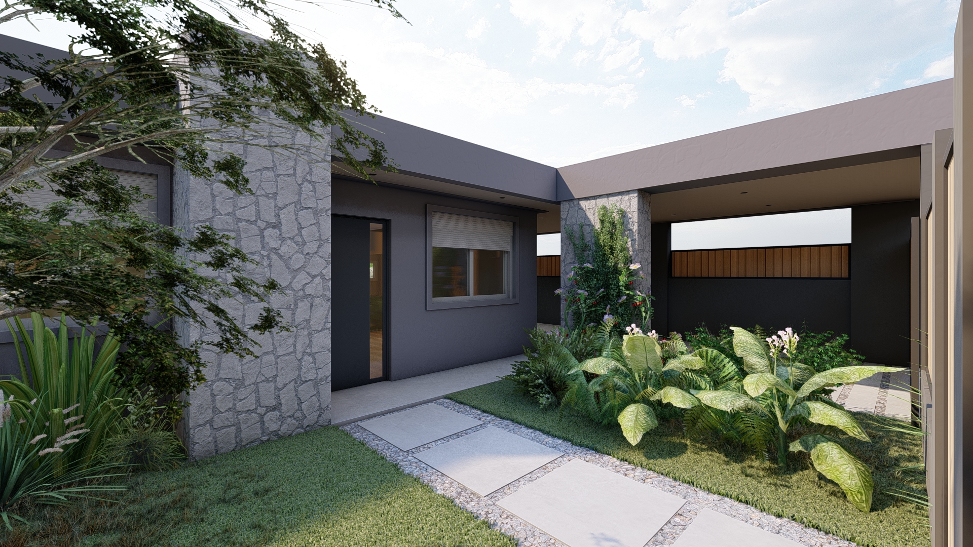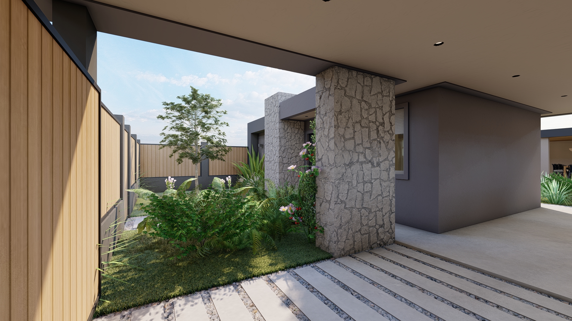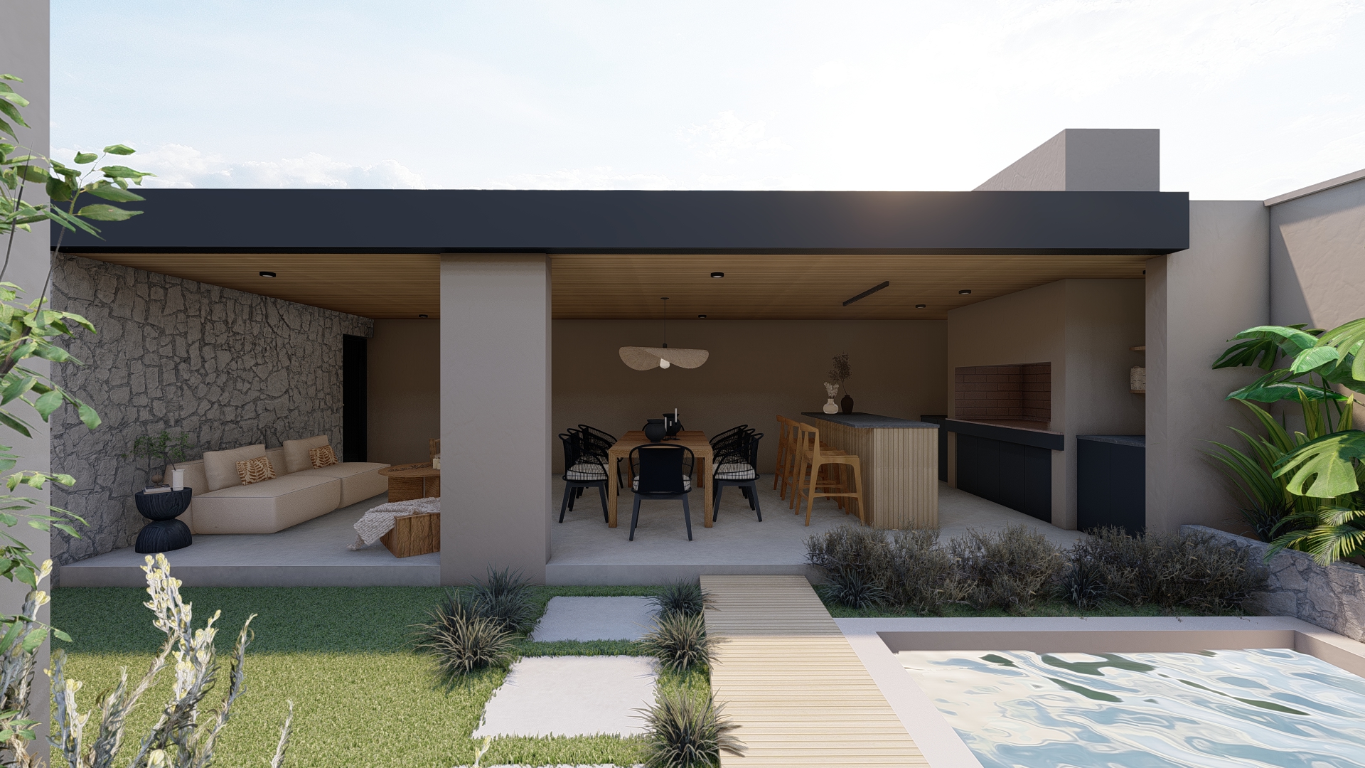 El proyecto organiza el exterior a partir de una secuencia clara, donde cada sector se relaciona de forma natural.
